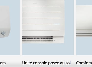 Profitez d'une logement plus confortable grâce aux fonctions avancées de chauffage, de climatisation et de purification de l'air de l'unité console posée au sol